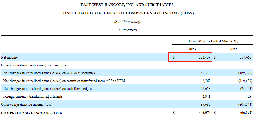 2022年华美银行的全年净利创历史新高,达11亿美元;2023年第一季度的净利也达到3.22亿美元
