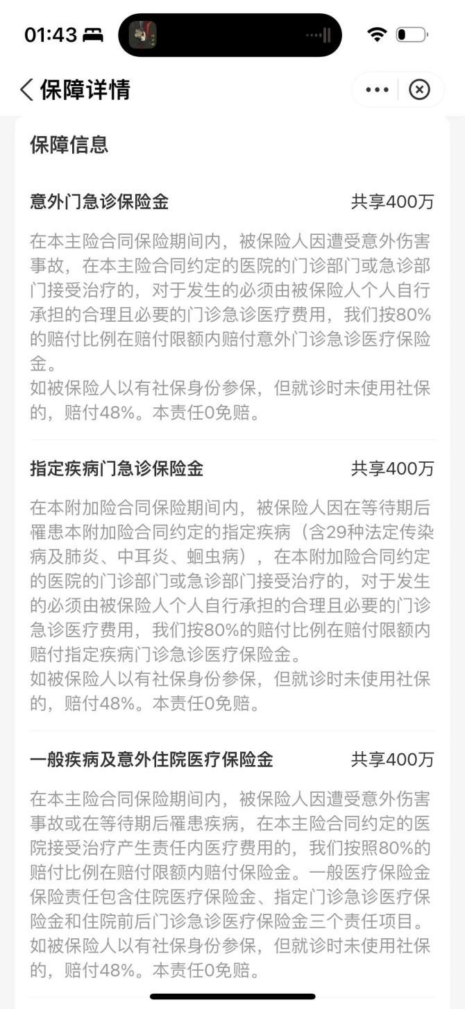 根据产品介绍,五大保障内容均0免赔。这也意味着,只要投保人发生了相关意外并有就诊记录,就可获得赔偿。