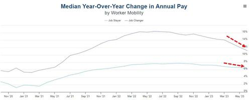 留职人员的工资同比增长6.4%,低于5月份的6.6%。对于换工作的人来说,工资增长连续第12个月放缓,至11.2%,是自2021年10月以来的最低增长速度。