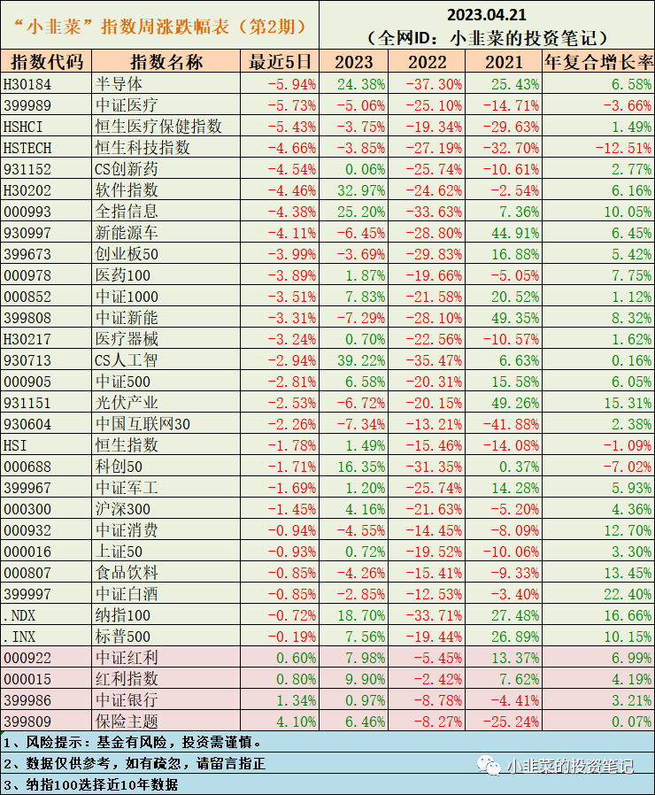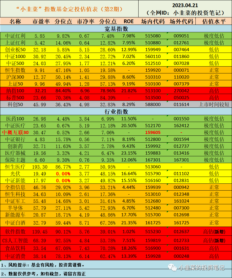“小韭菜”指数基金定投估值表(2023.04.21)-指数基金定投多少钱