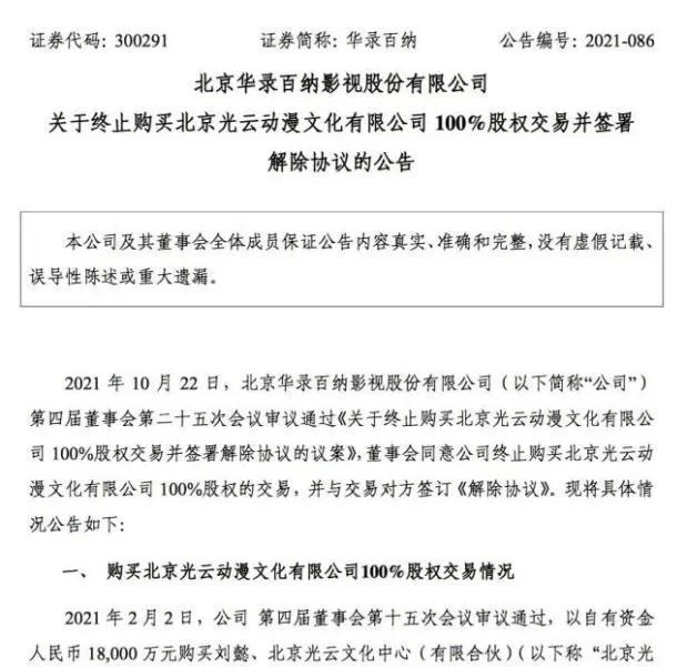 在动漫方面,华录百纳曾在2月2日宣布将以1.8亿收购光云动漫,不过在日前已经终止此次收购。