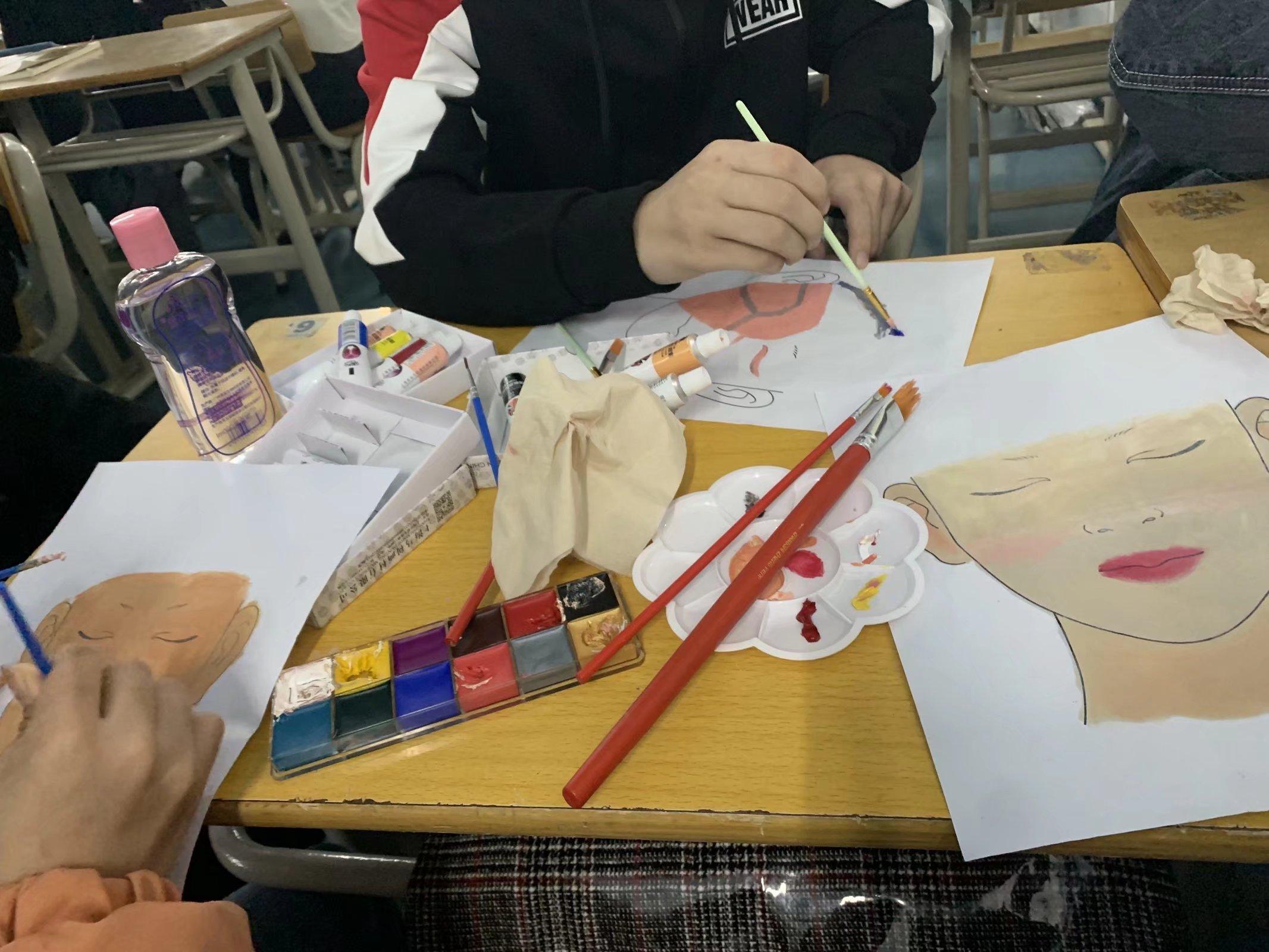 曹安在上遗体化妆课程,用油彩调配符合性别和年龄的肤色。受访者供图
