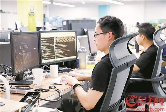 羊城晚报全媒体记者沈婷婷摄影报道:22日,深圳南山智园,机器人企业优必选科技公司研发人员正与北京团队远程连线,讨论产品的最新优化。央视2021牛年春晚的舞台上,深圳优必选科技全新研发的首款大型四足机器人化身“拓荒牛”,与刘德华、王一博、关晓彤等一起呈现了科技感十足的创意表演《牛起来》。