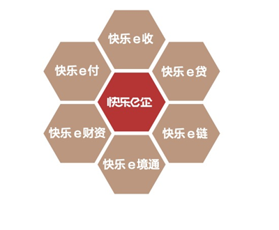 “快乐e企”是为了给企业提供更具针对性、更全面的系统性服务而创造的一位金融管家,下设6大产品包——快乐e贷、快乐e链、快乐e收、快乐e付、快乐e财资、快乐e境界通,对应企业在资金收、付、管、贷等方面,几乎涵盖了一家企业横向、纵向的所有需要,提供综合化金融解决方案。