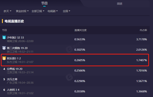 据数据显示,《欢乐颂3》开播后,收视率就一直在0.2徘徊,即便是峰值也只有0.3,两集平均收视率仅有0.26,在所有卫视中排在第3位。