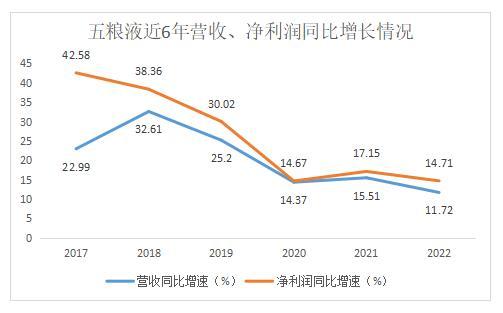 与自身相比,五粮液虽已连续6年保持营收净利双位数增长,但其2022年的营收和净利润增速与之前相比已处于较低水平。