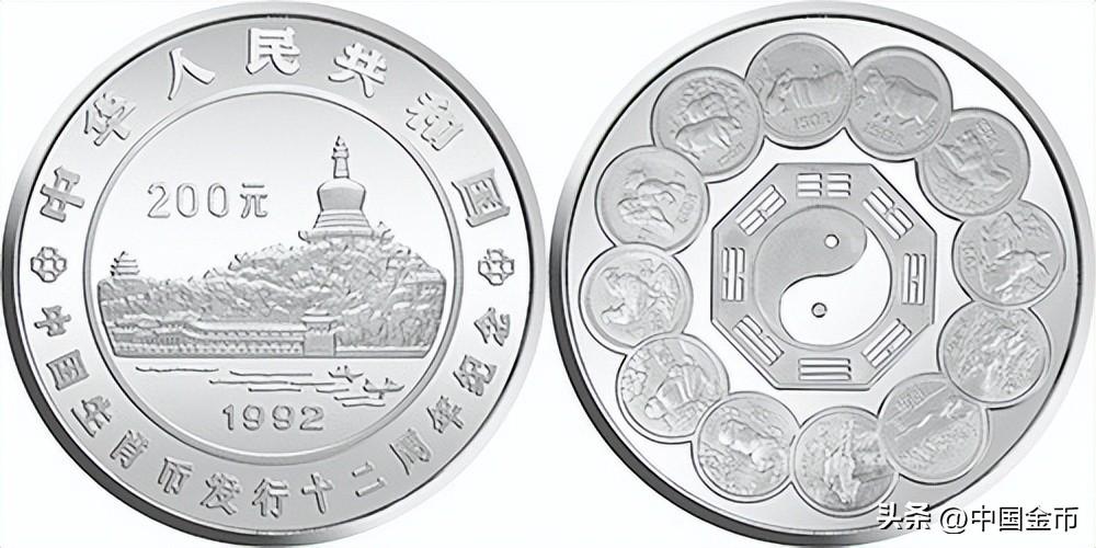 1992年,中国人民银行为纪念首轮十二生肖纪念币收官,发行了“十二生肖纪念币发行12周年”1公斤金银纪念币一套。金币发行量仅20枚,银币发行量为300枚。