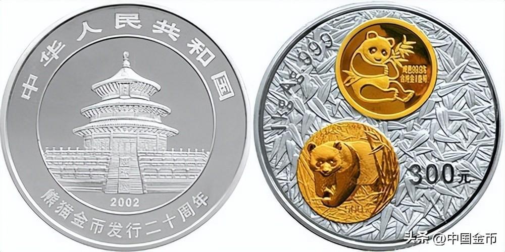 2002年,中国人民银行发行了一枚熊猫金币发行20周年1公斤镶金银币,该枚银币在铸造工艺上有了新的拓展。银币中的“1982版熊猫金币图案”和“2001版熊猫金币”图案以镶嵌工艺呈现。