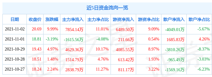 资金流向数据方面,当日主力资金净流入7854.14万元,游资资金净流入6489.5万元,散户资金净流出4049.01万元。近5日资金流向一览见下表: